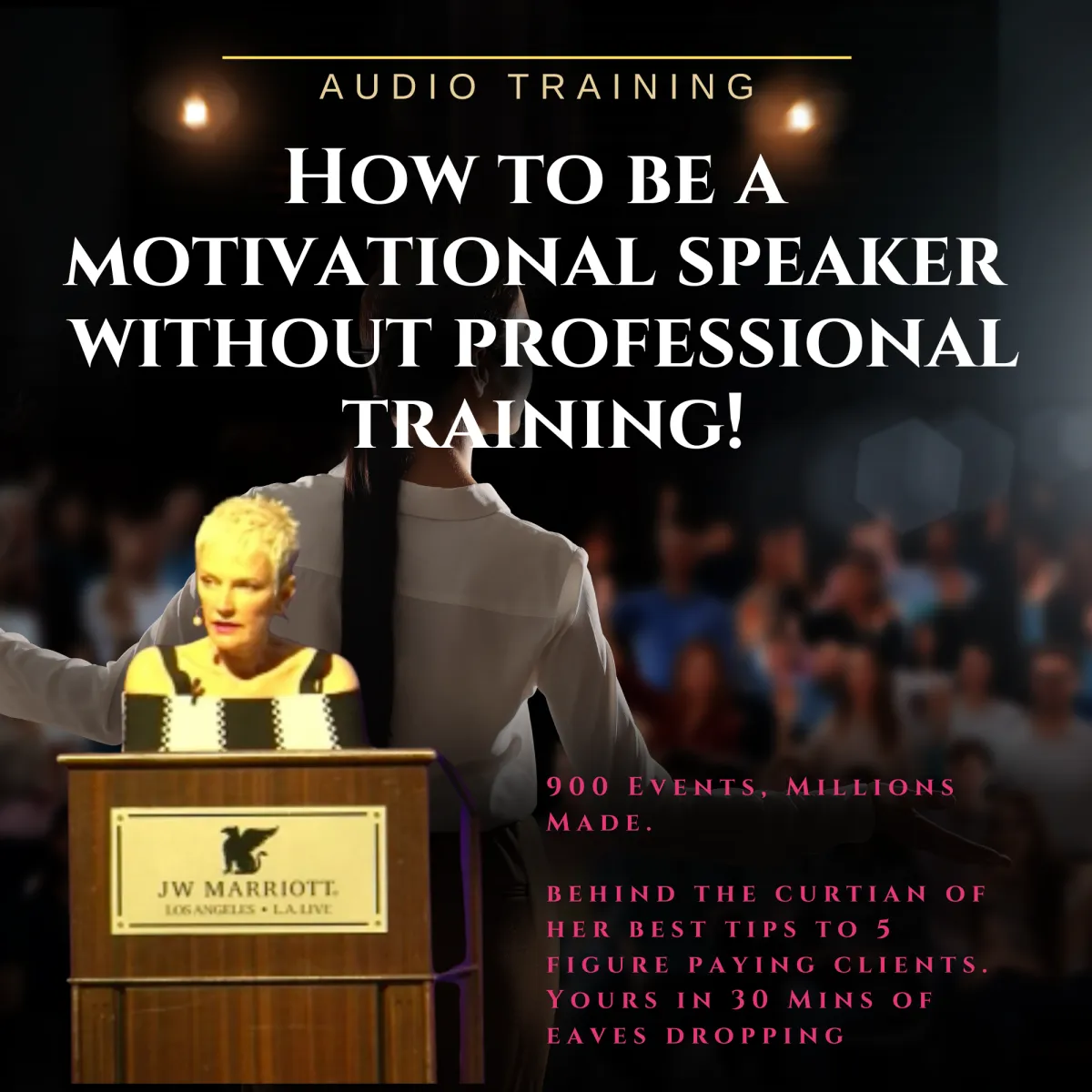 A dynamic 30-minute audio training designed for aspiring speakers who want to connect with their audience without the need for expensive courses.
